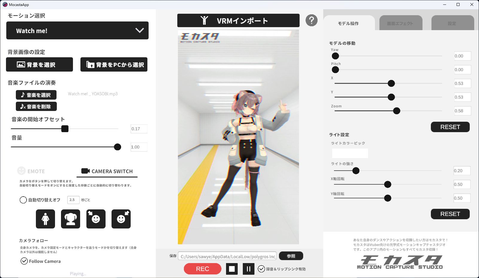 Mocasta App is a free and easy-to-use Windows application that lets anyone create short dance videos using their own VRM virtual characters.